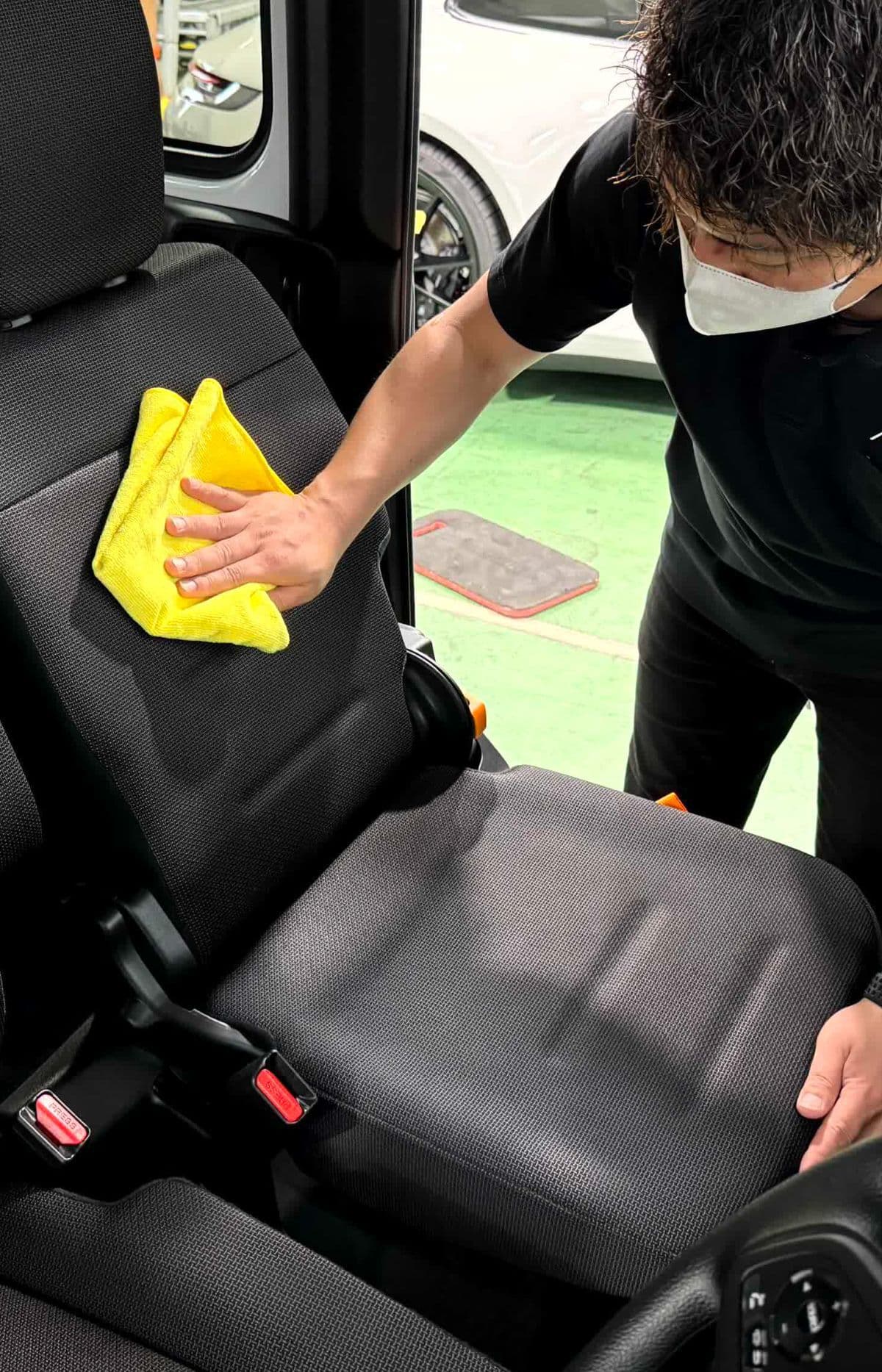 スチームリンサークリーナーによるシート洗浄風景